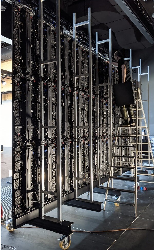 Başlangıçta müşteri, bir sahnedeki kirişe asılabilen bir perdeye sahip olmayı amaçladı, bir saniye düşündükten sonra aslında sahne zemininde istiflenebilecek bir duvar inşa etme olasılığı daha yüksek. ekran doğrudan zeminde durmak yerine braket yapısının üzerine istiflenir. Bu çözümün yararı, led duvarın demonte edilmeden sahnedeki herhangi bir konuma serbestçe hareket edebilmesidir.